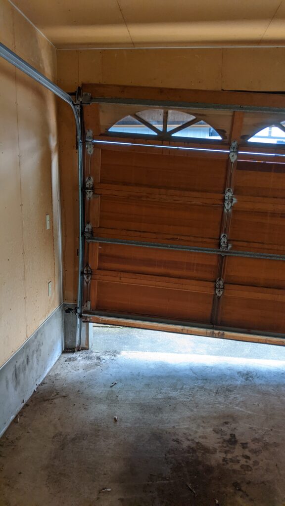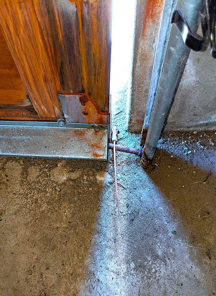 とにかく、サビて切れていました。閉まっている途中で切れて落ちたようなので、車や人が下にいる時でなくて良かったです。